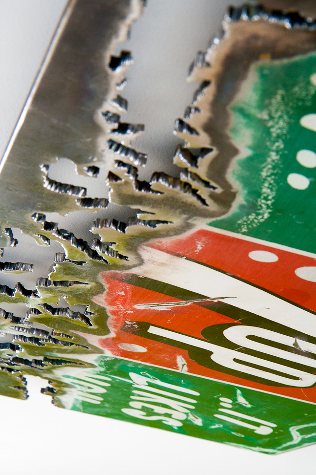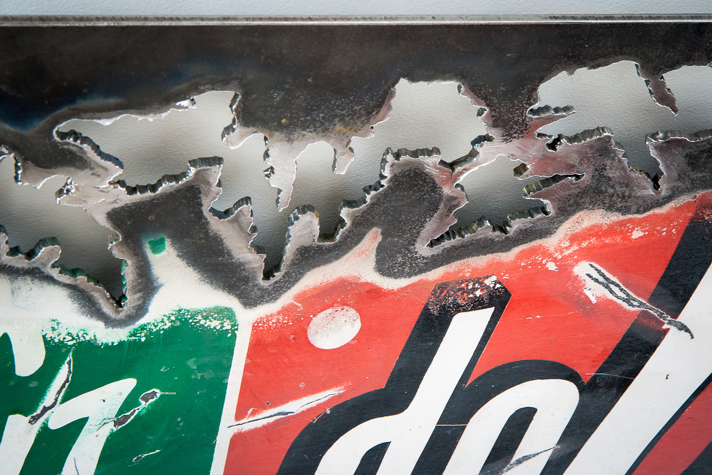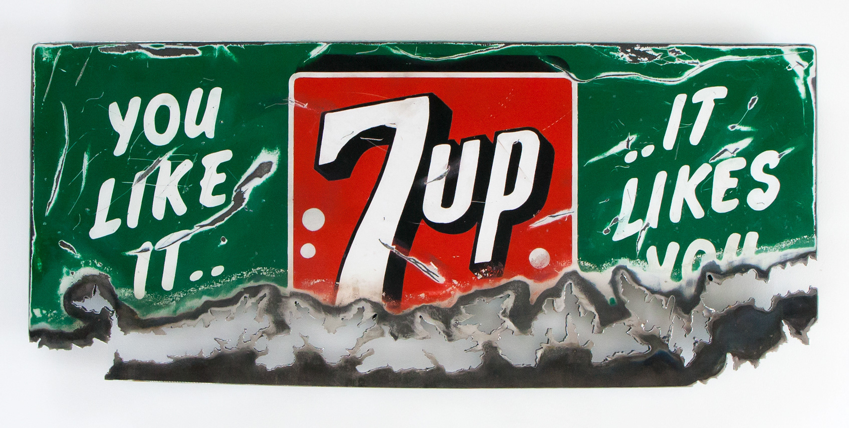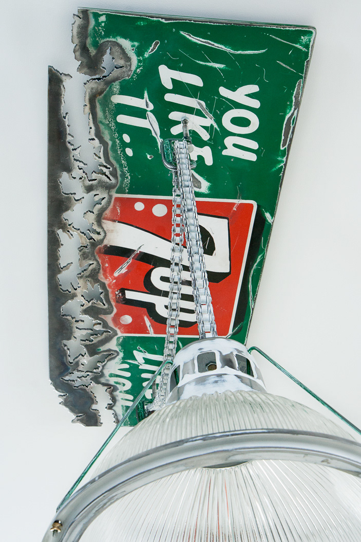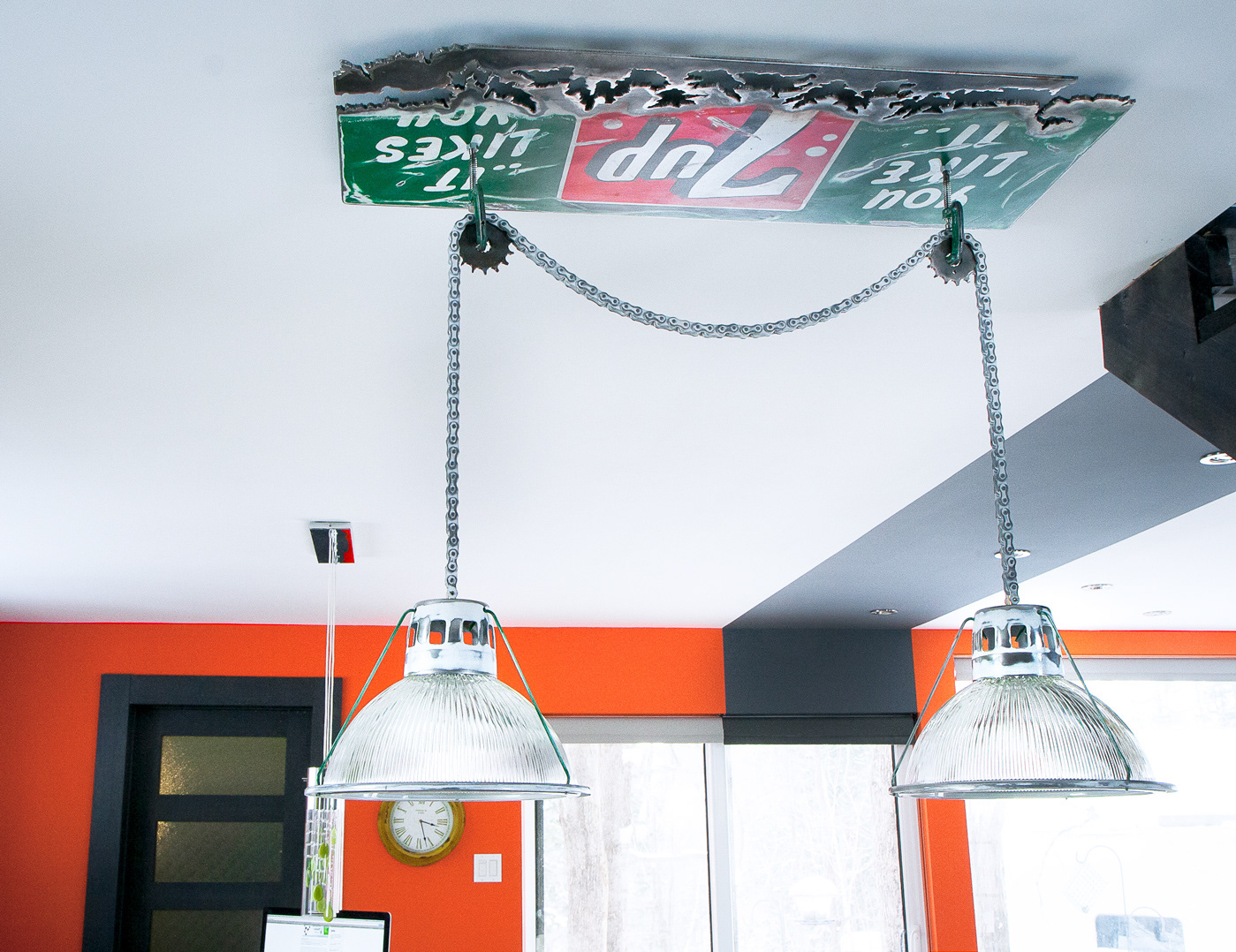 Lampe suspendue style industriel - affiche Seven Up vintage